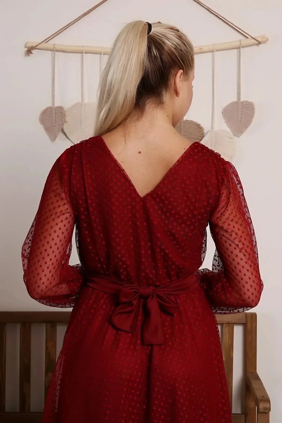 Burgundy Polka Dot Belted Tulle Plus Size Dress The Burgundy Polka Dot Belted Tulle Plus Size Dress draws attention in any setting with its elegant and stylish design. The vibrant burgundy colour creates a sophisticated look, while the polka dot pattern adds a retro touch. The tulle cut adds volume and elegance to the dress, ensuring a stunning appearance with every step. Designed with plus size options, this dress fits every body type perfectly and offers elegance. Colour and Fabric Burgundy: Burgundy creates an elegant and stylish look. It adds a sophisticated air to the dress while complementing every skin tone. Polka Dot Pattern: Polka dots create a nostalgic feel while providing an energetic look. This pattern adds a playful touch to the dress. Tulle Fabric: Tulle fabric creates a voluminous and dynamic effect. It gives the dress an elegant look while also providing comfortable wear with its lightweight construction. Design Details Belt Detail: The belt at the waist elegantly wraps around your waist, creating a slim silhouette. This detail enhances the dress's femininity and elegance. Tutu Cut: The tutu cut adds volume and elegance to the dress, while also creating a visually striking silhouette. Polka Dot Patterns: Polka dots create a retro feel, adding chicness and dynamism to the dress as an energetic and fun design element. Fabric and Comfort Lightweight and Comfortable Fabric: The lightness of the tulle fabric allows for comfortable wear over long periods. This fabric provides freedom of movement and all-day comfort. Flexible Structure: The dress's flexible fabric hugs the body, allowing you to move comfortably. Designed with plus size options, it fits every body type and offers both elegance and comfort. Occasions Special Events and Parties: The burgundy colour and polka dot pattern make this dress ideal for birthday parties, dinners, or special events. Weddings and Cocktail Parties: With its belt detail and tulle cut, this dress will highlight your elegance and make you stand out at events such as weddings and cocktail parties. Everyday Wear and Events: Complemented with minimal accessories, this dress reflects your everyday elegance and allows you to achieve a comfortable and stylish look. Benefits The Sophisticated Chic of Burgundy: Burgundy is an eye-catching and elegant colour in any setting, bringing your style to the forefront. The Playful Touch of Polka Dots: Polka dots create a retro vibe while offering modern chic. Voluminous Silhouette with Tulle Cut: The tulle cut adds volume and elegance to the dress, creating a dynamic look. Waist Accent with Belt Detail: The belt gracefully wraps around your waist, enhancing the dress's elegance and femininity. The Burgundy Polka Dot Belted Tulle Plus Size Dress stands out in searches for polka dot evening dresses, tulle dresses, and plus size dresses. Combining elegance and comfort, this dress ensures you make a stunning impression at any event! ✨👗