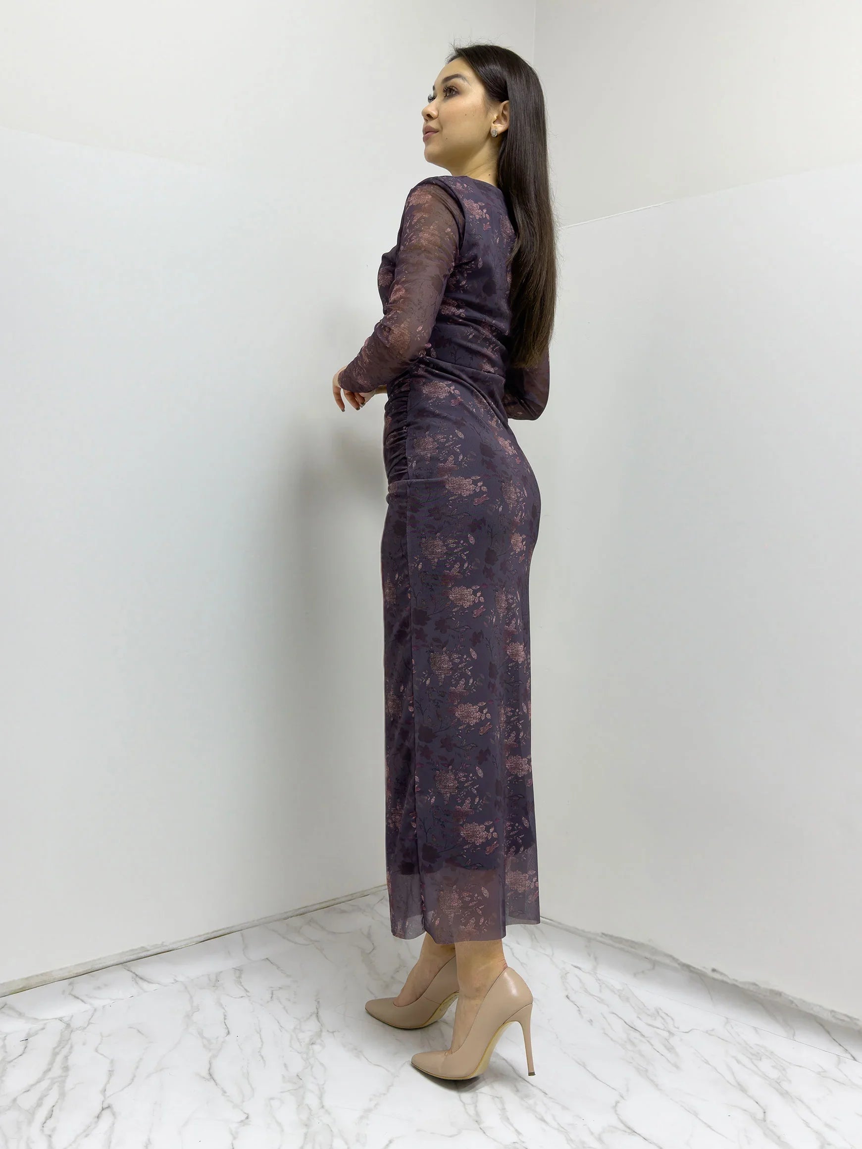 Purple Patterned Midi Tulle Dress