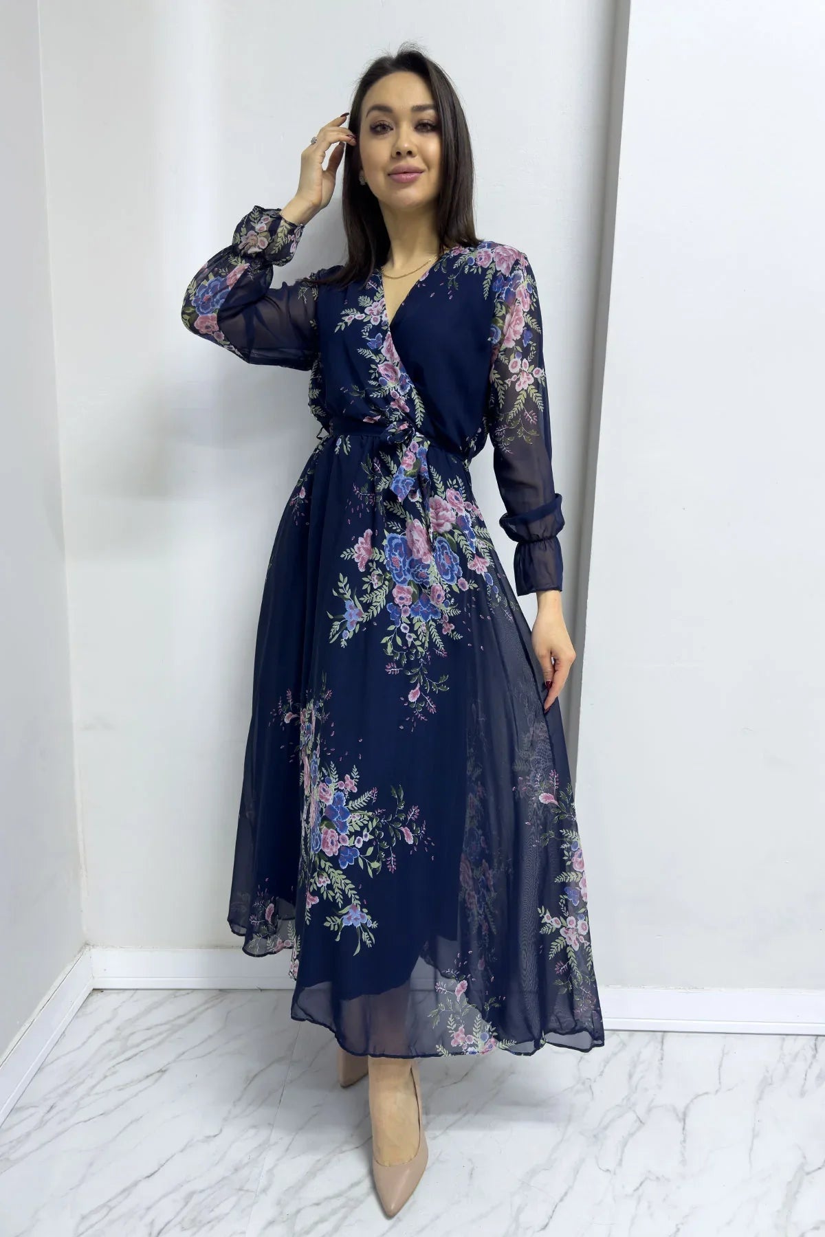 Navy Floral Cross-Over Neck Chiffon Plus Size Dress The Navy Floral Cross-Over Neck Chiffon Plus Size Dress, where the elegant navy colour meets floral patterns, offers a feminine and stylish look. The crossover neckline creates an elegant décolletage, while the chiffon fabric gives the dress a light and flowing structure. The plus size cut ensures comfortable wear and adapts to every body type. It is an ideal choice for reflecting your style in every setting, from everyday outfits to special occasions. Colour and Fabric Navy Blue: An elegant and noble shade that offers an impressive look in any setting. Floral Patterns: Add movement and vibrancy to the dress. Chiffon Fabric: Lightweight and flowing, it provides comfortable and stylish wear. Design Details Crossover Neckline: Offers an elegant décolletage with a feminine and modern touch. Plus Size Cut: A comfortable and stylish design suitable for all body types. Below-the-Knee or Maxi Length Options: Lengths that adapt to different occasions. Flared Cut: Creates a flowing silhouette and allows freedom of movement. Fabric and Comfort Lightweight and breathable chiffon fabric provides all-day comfort. Its flowing structure ensures an elegant look and comfort. Occasions Weddings and Events: Enhance your elegance by pairing with sophisticated heels and minimalist accessories. Romantic Dinners: Captivate with your elegance by pairing with a light shawl and sophisticated stilettos. Casual Outfits: Create a relaxed style by pairing with sandals and a simple bag. Photography: Capture unforgettable moments with the elegance of navy blue and the grace of floral patterns. Benefits The navy blue tone offers timeless and sophisticated elegance. Floral patterns add movement and natural grace to the dress. The crossover neckline design provides a feminine and modern detail. The plus-size cut combines comfort and elegance. This elegant and stylish dress stands out in searches for navy blue plus-size dresses, floral chiffon dresses, or modern party dresses. Visit The ZKS now and add a vibrant touch to your style with this elegant design! 💙✨👗