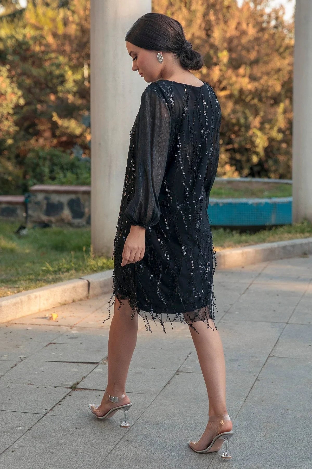 Black Short Sequin Evening Dress