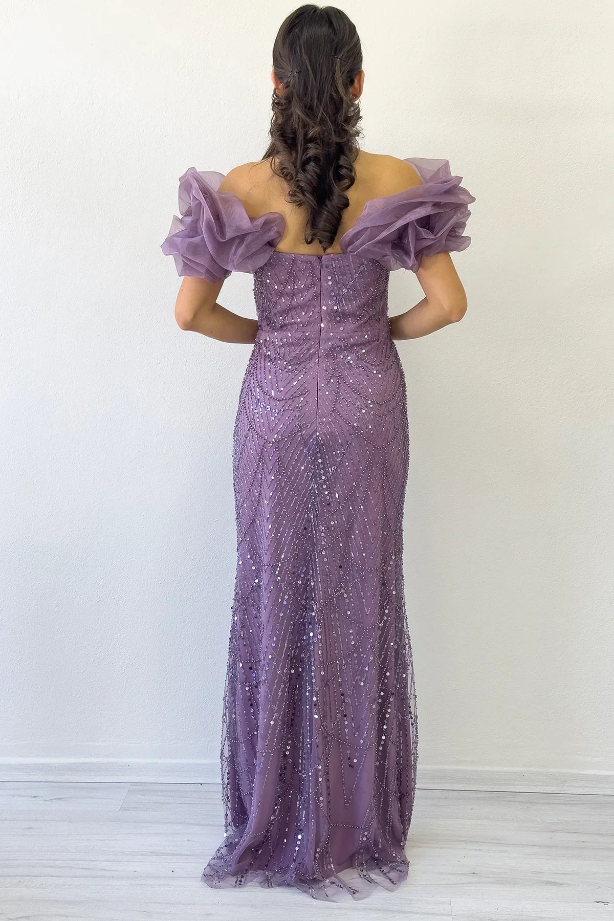 Lilac Off-Shoulder Sequin Evening Dress