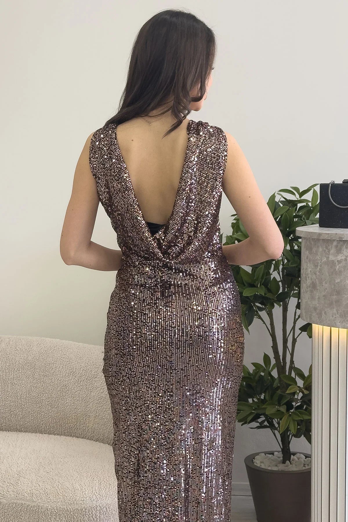 **Women's Mink Backless Strapless Sequin Plus Size Evening Dress** Turn heads at special occasions and chic events with its eye-catching design! This mink-coloured evening dress offers an elegant sparkle with its glittering sequin detail. Its strapless design and backless neckline create a feminine look, while the plus size options ensure it fits every body type. ### Product Features: - **Colour:** Mink - **Fabric:** Sequined fabric (Sparkling and eye-catching) - **Design:** Strapless model, elegant look with back neckline - **Size Options:** Wide range of sizes with plus size alternatives - **Occasion:** An excellent choice for special occasions such as weddings, engagements, graduations, hen nights This dress perfectly complements your skin tone with its elegant mink shade and easily coordinates with your accessories. Combining elegance and comfort, this style will ensure all eyes are on you!