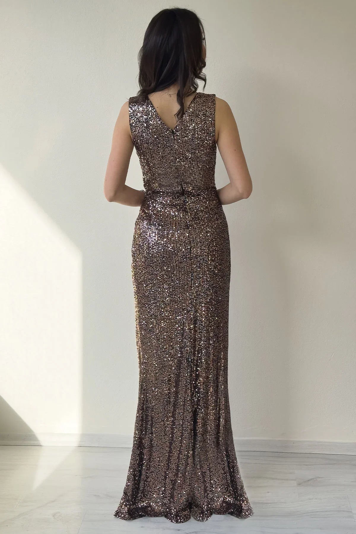 A Dazzling Touch of Elegance: Mink Cross-Over Neckline Sequined Fishtail Evening Gown An indispensable choice for special occasions, this mink evening gown features an elegant cross-over neckline and sparkling sequin details throughout, making you the star of the night. The fishtail silhouette gracefully hugs your figure, while the slit detail accentuates your femininity. The sleeveless design offers both modern and understated elegance. Colour: A chic and sophisticated mink tone. Collar: A crossover collar that elegantly shows off the figure. Fabric: Fully sequinned special design. Cut: Fishtail silhouette – accentuates the body's contours Detail: Sleek design with sleeveless and deep slit Size: Available in standard and plus sizes This evening gown is the ideal choice for weddings, engagements, graduations, galas and special evenings. With its dazzling sparkle under the lights, this design will be a favourite among women seeking both an elegant and bold look. Express your style, make your mark on the night. Shine on stage with theZKS.