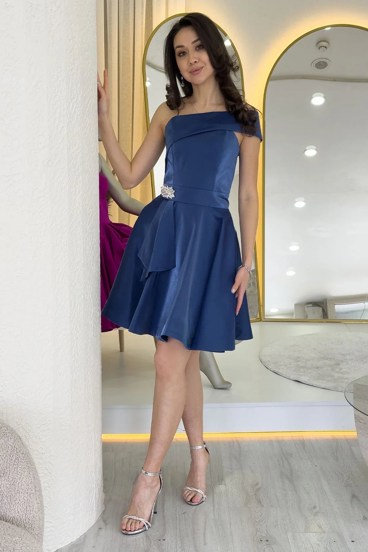 Navy Blue Short Strapless Evening Dress